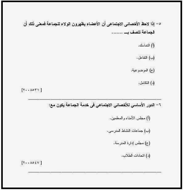 1- الاسئلة المتوقعة لتخصص الاخصائى الاجتماعى واخصائى المكتبات