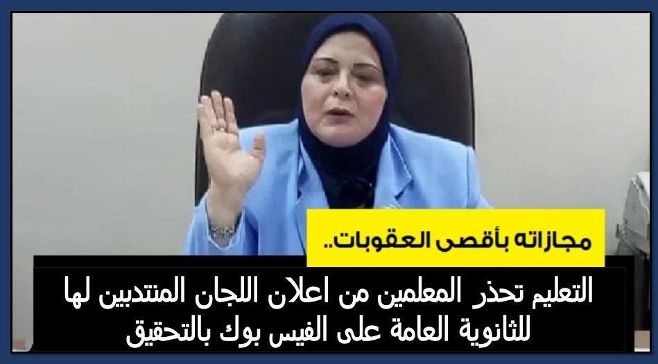 التعليم تحذر المعلمين من اعلان لجان الانتداب بالثانوية العامة على الفيس بوك بالتحقيق واقصى العقوبات