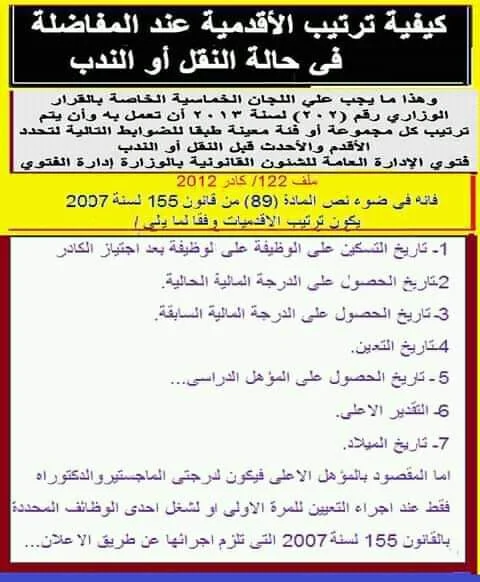 6- يتم الندب بالتناوب بين المعلمين تحقيقا للعدالة وفقا ل الاكبر سنا والاقدم بالوظيفة والدرجة والتخرج مع مراعاة الظروف الصحية والاجتماعية المؤيدة بالمستندات الرسمية.