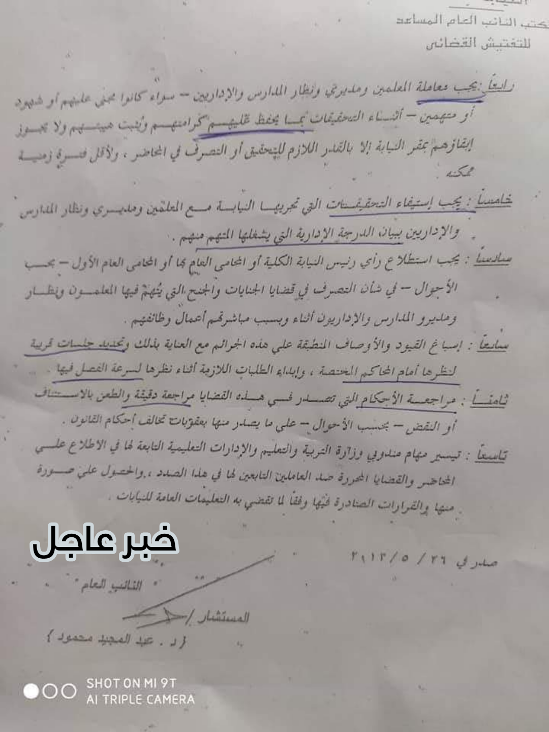 وبناء علية محظور اصطحاب المعلمين من عملهم بمعرفة الشرطة أو غير الشرطة وممنوع إحتجازهم ويتم أخطارهم بموعد محدد للمثول أمام النيابة مرفوعى الراس بكامل هيبتهم نظرا لإنه المعهود والمتبع فى حال تعدى أى مواطن على المؤسسات التعليميه وفى حال تحرير محضر يسبقهم المتعدى القسم لتحرير محضر ليكونوا محتجزين سواء واجبارهم على التنازل مقابل عدم الاحتجاز وللاسف شديد الاسف هذا الكتاب الدورى لايعرفه العاملون بالشرطة او حتى المعلمين أنفسهم ولذلك غير مفعل لعدم تداوله وجهل الكثيرين به.