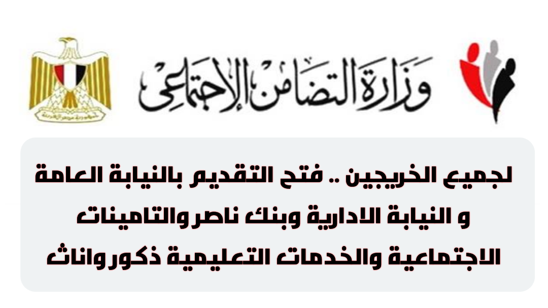 لجميع الخريجين .. فتح التقديم بالنيابة العامة و النيابة الادارية وبنك ناصر والتامينات الاجتماعية والخدمات التعليمية ذكور واناث