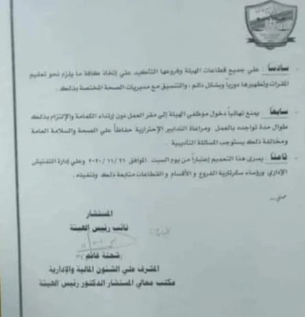 يمنع نهائى دخول الموظف الى مقر الهيئة بدون ارتداء كمامة