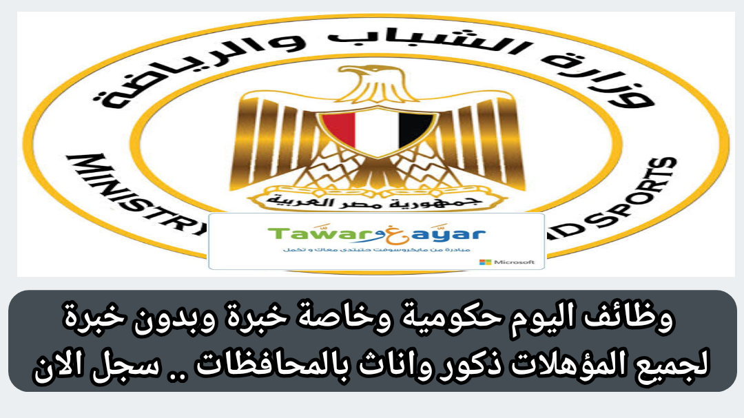 وظائف الشباب والرياضه وشركة مايكروسوفت لخريجى تجارة وتربية واداب وزراعه وطب وهندسة والسن وحقوق ووظائف للسائقين والفنيين تقدم الكترونياً