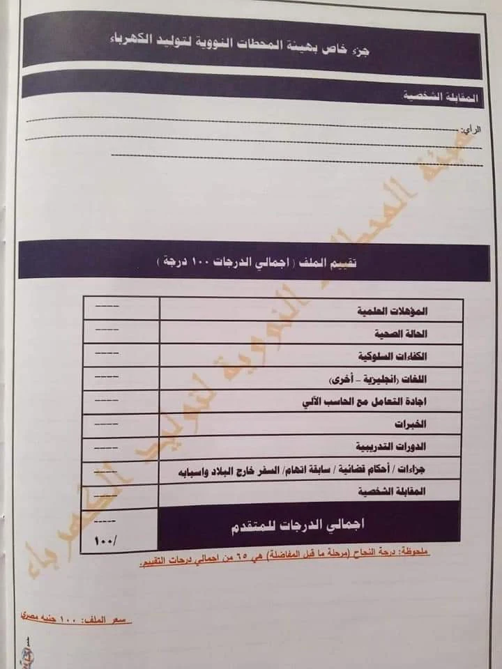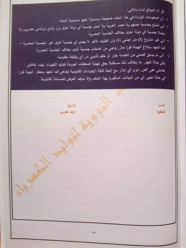 ٩-تقديم إقرار بقبول العمل بالقاهرة أو مواقع العمل بالضبعة