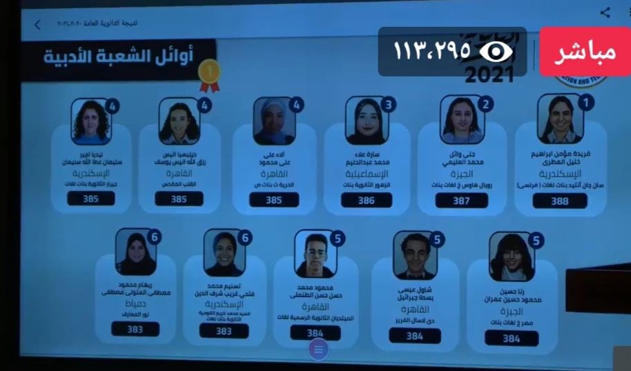 نتيجة الثانوية العامة ٢٠٢١ " اوائل علمى وادبى " ظهرت الان